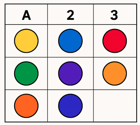 2. Ensuite, A donne 5 consignes uniquement basées sur la couleur, par exemple :